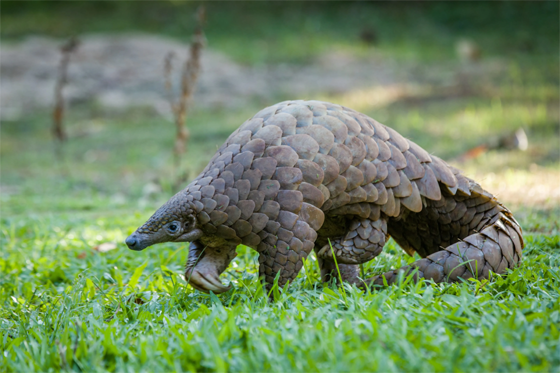 البنجولين هو حيوان من رتبة الفيوليدوتا، يشبه إلى حد كبير أكل النمل والمدرع، يعيش في جنوب شرق آسيا، كذلك في أندونيسيا وأجزاء من جنوب أفريقيا. والبنجولين شأنه شأن آكل النمل، له خرطوم طويل وليس له أسنان، يتميز بأذنين طويلتين ولسان لزج، يندفع بعيداً نحو الأمام كالحبال، ليقتنص به النمل الذي يحب أكله كثيراً. يكسو جسم حيوان البنجولين دروع مكونة من قشور بارزة، ومتداخلة مصبوغة باللون البني، وعلى درجات متفاوتة. يستطيع البنجولين أن يطوي جسمه، ويتكوّر ليصبح كالكرة المتماسكة، بحيث لا يقدر على إيذائه أحد. ويُعتبر حيواناً مسالماً، ومنه النوع الأبيض، الذي يعيش في غرب أفريقيا فوق الأشجار العالية، يتميز بذيل طويل، طوله يتجاوز ثلثي طول جسمه الكلي. لكن لحيوانات البنجولين بجميع أنواعها مخالب قوية وكبيرة، موجودة في أرجلها الأمامية، تستخدمها في تحطيم مساكن النمل، لتحصل على غذائها، وهي بدورها تصطاد للحمها، لكن حذر هذه الحيوانات يمنعها من الخروج إلا في المساء، وفي عتمة الليل لتبحث عن طعامها، وتحمي نفسها من الأعداء.