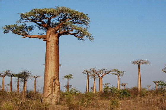 شجرة "باوباب" إحدى أغرب الأشجار في العالم؛ فطولها قد يصل إلى ثلاثين متراً، ومحيط جذعها لا يقل عن اثني عشر متراً، وهي تستطيع تخزين مئة وعشرين ألف لتر من المياه فيها؛ لذا تسمى بالشجرة الزجاجة، وتحتوي ثمارها على كميات من الكالسيوم أضعاف الموجودة في الحليب الطبيعي.