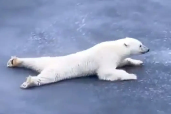 تزحف الدببة القطبية منبطحة على الجليد لتزيد مساحة التلامس بينها وبينه، فتخفف الضغط على السطح الهش وتقلل احتمال انكساره تحت وزنها، الذي قد يبلغ نحو ٦٨٠ كيلوغراماً. يجسد هذا السلوك مبدأً فيزيائياً بسيطاً، مفاده أنه كلما توزع الوزن على مساحة أكبر، انخفض الضغط على كل نقطة من السطح.