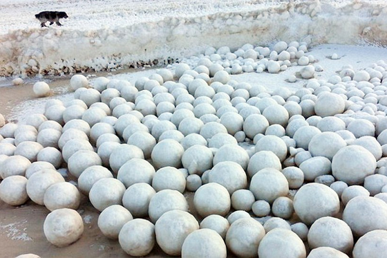 تشهد ضفاف بعض البحيرات في العالم خلال موسم الشتاء ظاهرة غريبة في حدوثها وجميلة في شكلها الا وهي كرات الثلج المتجمدة التي تحدث بسبب التصاق مجموعة من القطع الجليدية مع بعضها البعض ثم تأخذ شكلاً دائرياً بعدما تتدحرج على الأرض وتنتقل من مكان إلى آخر، لكن هذا لا يحدث إلا إذا كانت القطع الجليدية غير حادة الجوانب.