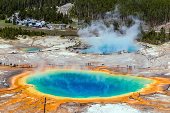 نبع البراق الكبير هو أكبر الينابيع المائية الحارة في الولايات المتحدة، فيبلغ قطره ٩٠ متراً وأما عمقه فيبلغ ٥٠ متراً، ويعود الفضل في اكتشافه إلى بعثة من المستكشفين الجغرافيين في عام ١٨٣٩، وتمتاز مياهه بألوانها المتعددة منها الأخضر والأحمر والأزرق ويعود هذا التنوع في الألوان إلى وجود أنواع مختلفة من البكتيريا الطافية على سطح المياه وأيضا تمتاز بشدة تعقيمها بسبب ارتفاع درجة الحرارة فيها.