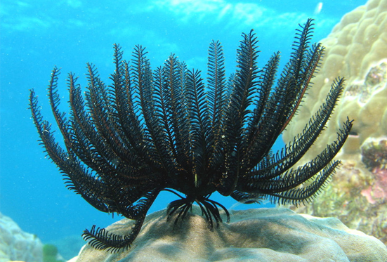 تعتبر نجمة الريشة نوعاً من أنواع اللافقاريات البحرية، وتتواجد في أعماق المحيطات مثل المحيط الهادي، وتمتلك أذرعاً تشبه الريش مثل الأخطبوط، ومعظم أنواعها لا تستطيع السباحة وانما تزحف فقط، وبعض أنواعها تكون سامة لتحمي نفسها من المفترسات، وتتميز بألوانها الرائعة مثل الاحمر والبرتقالي والاصفر وغيرها. تمتلك نجمة الريشة أذرعاً كثيرة ليبلغ عدد بعضها نحو ٢٠٠ ذراع، تستخدمها في التقاط غذائها.