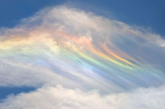 قوس قزح النار هي ظاهرة شائعة الحدوث في الولايات المتحدة الأمريكية، خلال فصل الصيف، ولا يصاحبها نيران، كما لا يرتبط حدوثها بقوس قزح الذي يظهر في الشتاء، لكنها تحدث عندما يتساوى خط أشعة الشمس مع توزيع الكتل الثلجية المتراكمة في السحب، حيث تقوم تلك الكتل الثلجية بتحليل الضوء إلى ألوان تبرز في السماء متخذة شكل اللهيب.