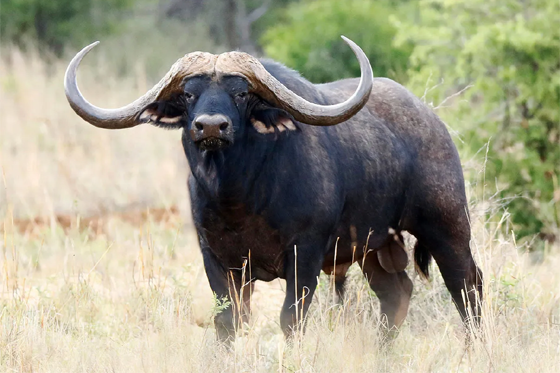 - الجاموس الأفريقي: وهو من الحيوانات البرية التي تتواجد في غابات افريقيا وهو عدة أنواع منها جاموس السافانا وجاموس الرأس وجاموس الغابات ويعد من الحيوانات العنيفة التي لم يستطع الإنسان ترويضها وتعد قرونها درعاً مميزاً لا يستطيع الإنسان اختراقه.