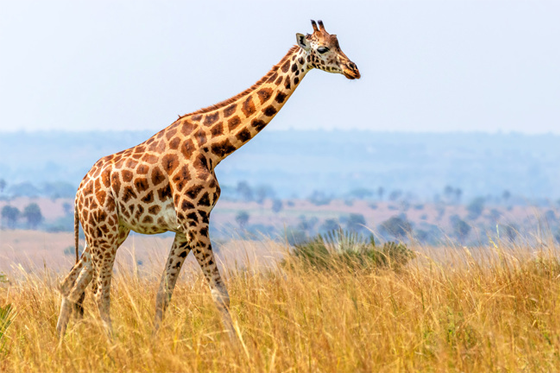 تعد الزرافة من الحيوانات آكلة الأعشاب وتعتمد على طول رقبتها وطول لسانها للوصول إلى رؤوس الأشجار والنباتات التي لا تستطيع جميع الحيوانات الأخرى الوصول إليها، وبفضل تلك النباتات التي تحتوي على الكثير من السوائل تستطيع الزرافة أن تبقى لعدة أسابيع دون شرب الماء، وتمتاز الزرافة بأنها تمتلك رأساً على شكل مثلث يقع في أعلاه قرنان قصيران اما جسمها فهو مغطى بجلد عليه بقع بنية وسوداء اللون يفصل بينهما اللون البني الفاتح. الزرافة ليس لها صوت لأنها لا تمتلك حبالا صوتية.