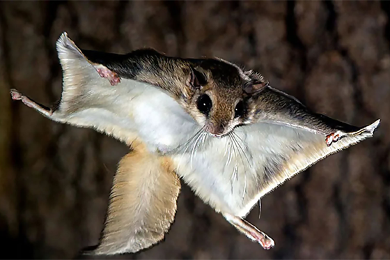 يعيش السنجاب الطائر غالباً على الأشجار وهو من القوارض، ويمتلك ذيلاً كبيراً يساعده في التوازن، وينشط في الليل، ويختبئ بعيداً عن عيون المفترسين، ولديه عينان واسعتان يعتمد في غذائه على الفواكه والبذور والحشرات. السنجاب الطائر يطير لمسافات كبيرة بين الأشجار من خلال الانزلاق عليها.