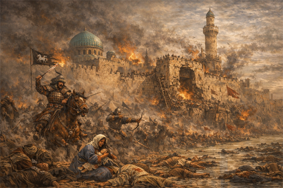 عام ١٢٥٨ميلادية، سقطت بغداد بيد هولاكو خان، وأنهى الحدث الخلافة العباسية بعد قرون من السيادة. بدأ الحصار في يناير عام ١٢٥٨؛ حين طوقت الجيوش المغولية أسوار المدينة، وقصفتها بالمنجنيقات حتى انهار الدفاع واستسلم الخليفة المستعصم بالله. أحرق المغول أكبر مكتبة في العالم آنذاك، وألقوا بآلاف المخطوطات في نهر دجلة، حتى تلونت مياهه بالأسود. عاشت بغداد جحيماً حقيقياً؛ قتل مئات الآلاف، وأُعدم الخليفة، وتحولت المدينة التي كانت منارة الدنيا إلى أطلال. انتهى حكم العباسيين في بغداد، لتنتقل الخلافة لاحقاً كمنصب رمزي، إلى القاهرة تحت حماية المماليك، معلنة بداية حقبة تاريخية وسياسية جديدة.
