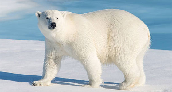 الدب القطبي من أكبر آكلات اللحوم التي تعيش على البر، ويبلغ ضعف حجم الأسد.. يتراوح طول الذكر بين مترين ومترين ونصف، ووزنه مابين ٢٩٥ و ٧٩٠ كيلوجراماً، وتكون الأنثى أصغر حجماً. وينحصر موطنه في الأصقاع القطبية حيث يجوب المناطق الجليدية في المحيط المتجمد الشمالي. وهو يتحمل البرودة الشديدة بفضل فرائه الكثيف المبطن وطبقة سميكة من الدهن تحت الجلد.. كما أن أقدامه العريضة مكسوة بالشعر من أسفلها، مما يسمح له بالتنقل بسهولة دون أن ينزلق فوق الجليد والثلوج.. وهو ماهر في السباحة ويستأثر الذكر لنفسه بمنطقة واسعة خاصة به، يعتبرها مجاله الحيوي في بيئته القاسية ذات مصادر الغذاء المحدودة.يستفيد الدب القطبي من لون فرائه الأبيض الذي يساعده على التمويه، فلا يظهر وسط الثلوج عندما يتربص بفرائسه.. وهو يصطاد الفقمة أو عجول البحر، التي يكمن لها عندما تطل من الماء لتتنفس الهواء. ولكنه يقتات أيضاً بالأسماك والطيور البحرية. ويلتهم خلال الربيع والصيف كميات كبيرة من الحشائش والطحالب والثمار البرية والأعشاب البحرية. وعندما يتعارك مع فيل البحر تكون الغلبة عادةً للثاني، لأنه يبقر بطنه بنابيه. وعموماً، فإن الانسان يعتبر العدو الأول للدب القطبي، بسبب صيده من أجل فرائه.. لذا أبرمت اتفاقيات دولية للحفاظ عليه في موطنه.