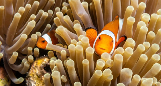 التعاون المتبادل بين أنواع مختلفة من الطيور والحيوانات، كُتب عنه الكثير.. لكن أغرب علاقة بين نوعين مختلفين من المخلوقات البحرية، يتمثل في الأسماك المهرجة وشقائق النعمان. الأسماك المهرجة حملت هذا الاسم بسبب شكلها الغريب.. فهي متعددة الألوان، ومع كل لون، يبرز شريط أبيض، يبدأ من أنفها، ويلتف حول وجهها، ليصل من ظهرها إلى ذيلها.. ولأنها أسماك ودودة مرحة، لا تخشى اقتراب الغواصين منها، فقد استحقت وبحق هذه التسمية، أي الأسماك المهرجة.أما شقائق النعمان، فإنها مخلوقات بحرية لا فقارية، مثل المرجانيات وقناديل البحر.. جسمها اسطواني له لوامس مزودة بخلايا لاسعة، وتوجد عادة مثبتة بالصخور والأعشاب في المياه الضحلة، وتتخذ أحياناً شكل الورود الرائعة الجمال. الأسماك المهرجة اختارت الحياة وسط شقائق النعمان، واستعانت بإفرازات تخرج منها، تحميها من المجسات أو اللوامس اللاسعة الحاملة للسموم، والتي تستعين بها لصيد فرائسها.