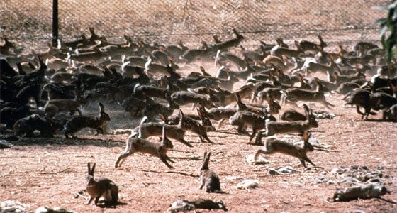 في الوقت الذي تسعى فيه كثير من الدول لتربية الأرانب لتكون ثروة غذائية للسكان، تعاني أستراليا من كثرة الأرانب على أراضيها لدرجة أنها تحاول التخلص منها. تبدأ حكاية الأرانب في أستراليا مع بداية القرن الثامن عشر حيث تم إدخال ثلاثة أزواج من الأرانب إلى البلاد، تكاثرت بسرعة هائلة، وعندما تم إحضار بعض السلالات الأخرى من الخارج ازداد تكاثرها فازدادت أعدادها زيادة هائلة صارت تهدد النباتات الخضراء على أرض القارة الواسعة. نستطيع تصوُّر ذلك إذا عرفنا أن إناث الأرانب تلد بمعدل أربع إلى ثماني مرات في السنة، وفي كل مرة تلد عدداً من الصغار يتراوح من خمسة إلى ثمانية أرانب، وخلال أسبوعين تكون هذه الأرانب الوليدة قادرة على إطعام نفسها، وفي عمر ٦ أشهر تكون قادرة على التكاثر والولادة.