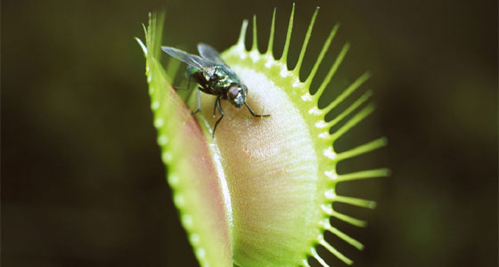 اكتشف العلماء وجود مجموعة من النباتات آكلة الحشرات، تنمو في مساحات من المستنقعات الاستوائية، التي لا يمكن أن تعيش فيها أي من النباتات الأخرى. ومن أمثلة هذه النباتات آكلة الحشرات، نبات "مصيدة الذباب" وتنمو هذه النباتات في التربة الضعيفة الخالية من النيتروجين، والتي لا تستطيع أي نباتات أخرى أن تعيش فيها، لأن النيتروجين يمنح النباتات الطاقة اللازمة لحياتها.ويعوّض نبات "مصيدة الذباب" نقص مصادر الطاقة بطريقة خاصة وغريبة، إذ أنه يجتذب الحشرات (وأكثرها ذباب) بواسطة ألوانه الجميلة وإفرازاته ذات الطعم السكري، وبمجرد هبوط الحشرة على النبات، ترسل شعيرات حساسة على الأوراق إشارات كهربائية تشبه الإشارات التي يرسلها جهازنا العصبي لأعضاء الجسم كي يفرز نبات "مصيدة الذباب" عصارة مائية بسرعة حول أوراقه، تعمل على غلق أطرافها جزئياً.
