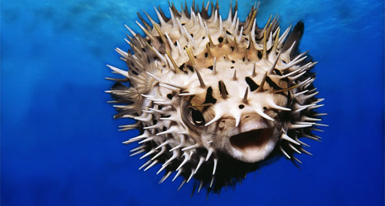 هل تصدق أن سمكة طولها لا يزيد عن قدمين، تستطيع التحول إلى وحش مخيف، يثير الرعب عند أشرس أسماك الفك المفترس، أي القرش؟.. تلك حقيقة تعبر عن غرائب عالم البحار.. وتجسدها الصورة النادرة التي التقطها مصور بارع.هذا النوع من الأسماك القنفذية، ينقلب إلى وحش يحمل جسمه عشرات الأشواك التي تشبه الخناجر، عندما يشعر بخطر يتهدده، ويستطيع التكوّر بمهارة.. مع انتفاخ جسمه بصورة تخيف جميع الأعداء! ولأن سمك القنفذ ينتمي إلى فصيلة تسمى السمك المنفوخ، فهو يعتمد على نفس الأسلوب عند الانتفاخ.. إذ يبتلع بسرعة كمية هائلة من المياه، ليتحول الجسم إلى ما يشبه البالون، وتظهر الأشواك المذهلة.