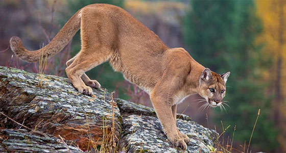 يُعرف الأسد الجبلي بتسميات متعددة تشمل الأسد الأمريكي، والبوما، والكوجار، وهو حيوان ثديي أمريكي رشيق وكبير الحجم ينتمي إلى فصيلة السنوريات. يحتل هذا الحيوان المرتبة الثانية بين أكبر القطط البرية في قارة أمريكا بعد النمر الأمريكي (الجاغوار). ويعود أصل تسمية "بوما" إلى لغة شعب الإنكا القديم. وينتشر هذا الحيوان بشكل متفرق بدءاً من مقاطعة كولومبيا البريطانية في غرب كندا، وصولاً إلى سهول وبراري باتاغونيا في الأرجنتين بأمريكا الجنوبية. وتتنوع بيئاته الطبيعية لتشمل المناطق الجبلية والصحاري الغابات، إلا أنه انقرض من مناطق عدة بسبب التوسع البشري، مما حصر تواجده الحالي في البراري والمناطق النائية البعيدة عن التجمعات السكانية الكبيرة.ويتراوح لون البوما بين البرتقالي الباهت والبني المائل إلى الحمرة، مع أطراف داكنة للأذنين والذيل، بينما يكسو اللون الأبيض مناطق الأرداف والبطن، وتخلو رقبته من اللبدة. ويتراوح وزن الحيوان البالغ بين ٣٥ ومائة كيلوغرام أو أكثر. ويصل طول الذكر إلى حوالي مترين ونصف المتر، يشكل الذيل ثلثها، في حين يتراوح ارتفاع قامته حتى الكتفين بين ٦٠ و ٧٥ سنتيمتراً، وتتميز الإناث بحجم أصغر من الذكور. وعلى الرغم من أن صوت البوما يشبه مواء القطط، إلا أنه يمتاز بنبرة أعلى وأقوى.